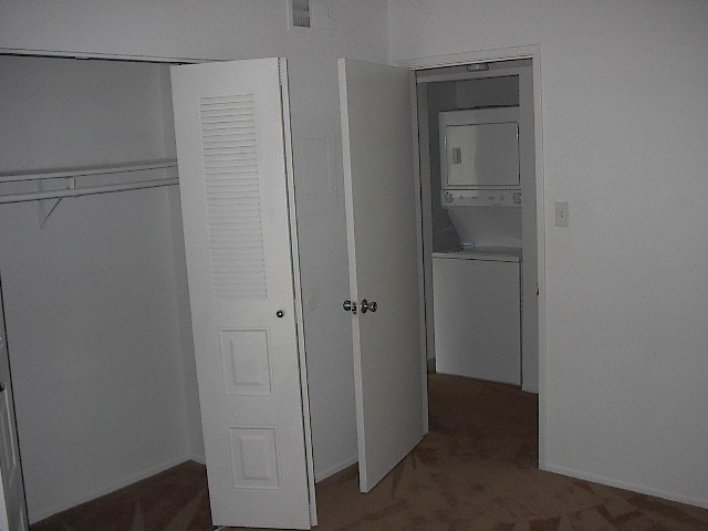 2nd bedroom: view of closet and into halway where washer/dryer is
